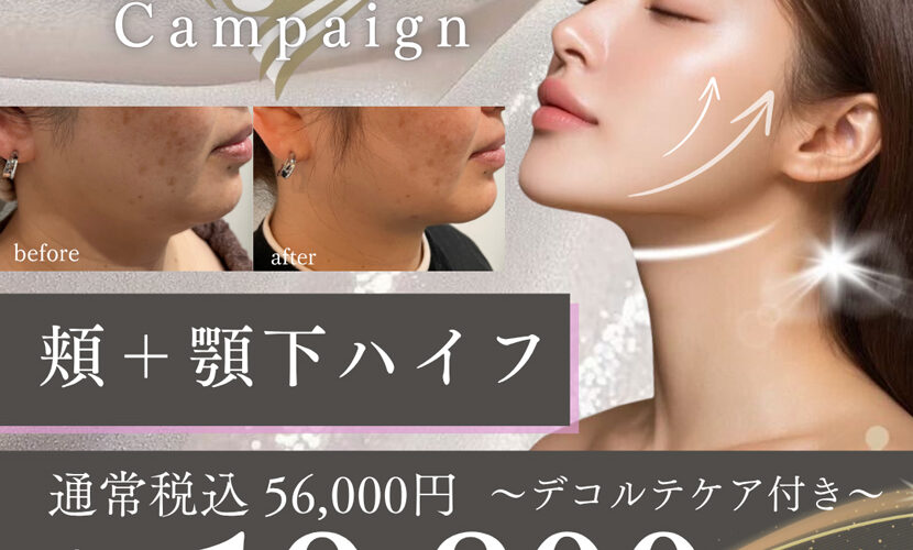 ハイフの中でも人気の高い「頬+顎下」照射は、