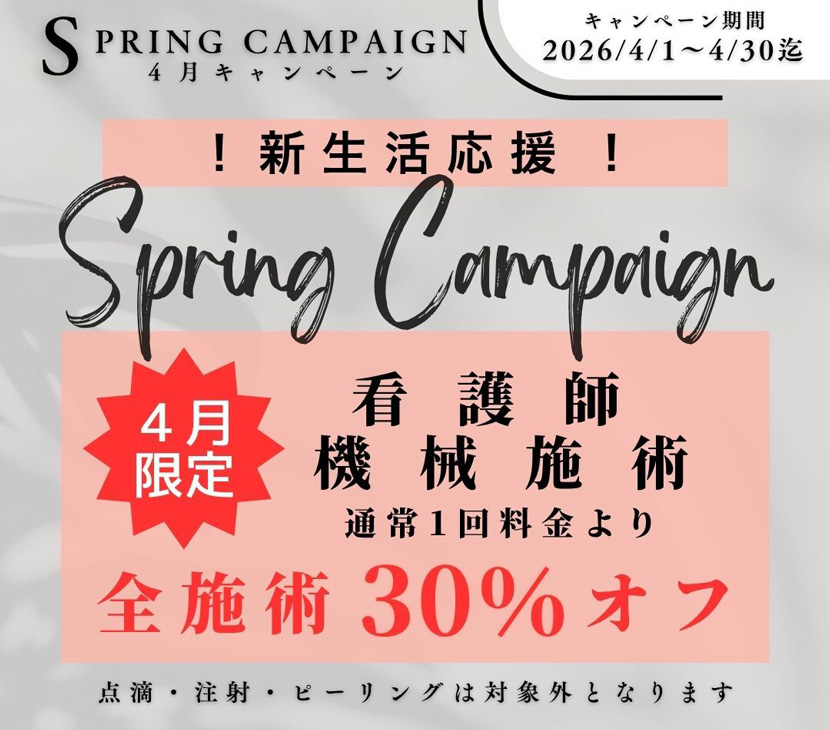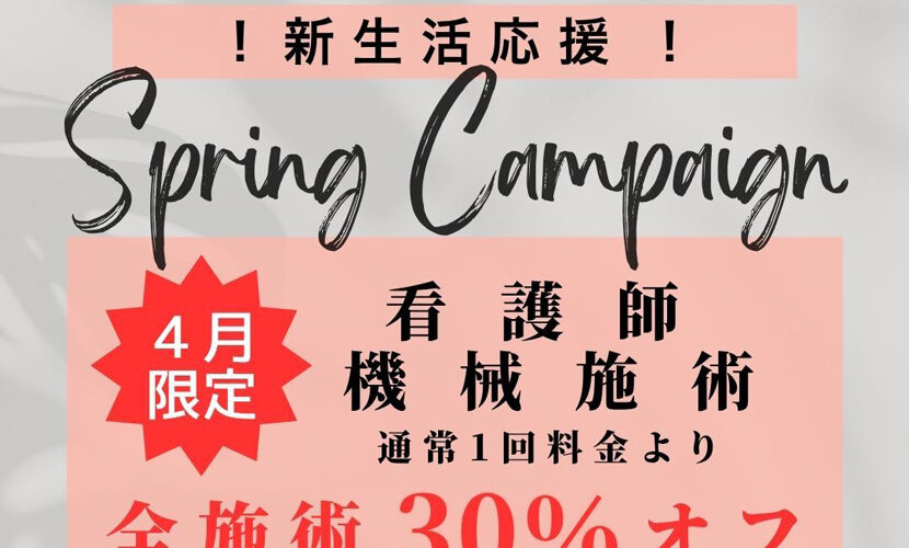 【新生活応援!】看護師 機械施術 全施術30%OFF