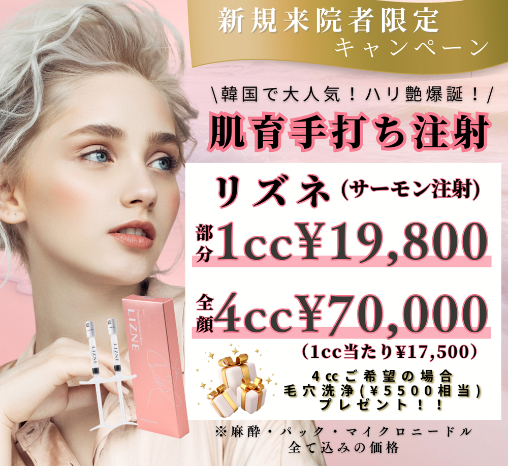 全顔4cc 70,000円 ※4ccご希望の場合、毛穴洗浄(5500円相当)プレゼント!