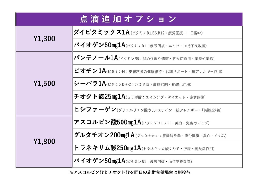 ビタミンに似た物質で、体の中で自然に作られます。しかし加齢に伴い体内での生産量が減ってしまいます。このエイジングケア点滴をすることで、代謝がよくなり、身体の見た目や機能が、劇的な変化を起こすとされ、「若返りの薬」として世界中で注目を集めています。