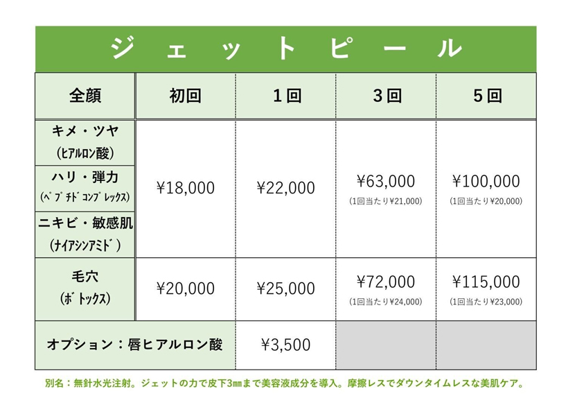 化学薬品を使うことなく、水と酸素によるジェットスプレーで効果を得るので、ナチュラルピーリング派の方におすすめします。