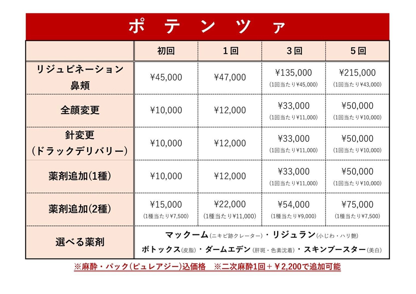 ボツリヌス注射/ボトックス 脂肪溶解注射 肌育注射 ピコレーザー ハイフ ポテンツァ 女性脱毛 男性脱毛 ピーリング ダーマペン 美容注射 美容点滴